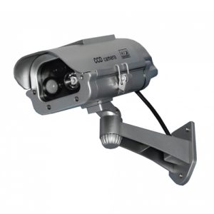 This is a bullet style IR Dummy Camera. It has a constant flashing red LED light. It’s realistic looking can be mounted just about anywhere. It has an easy adjusting bracket so it sets up in minutes.